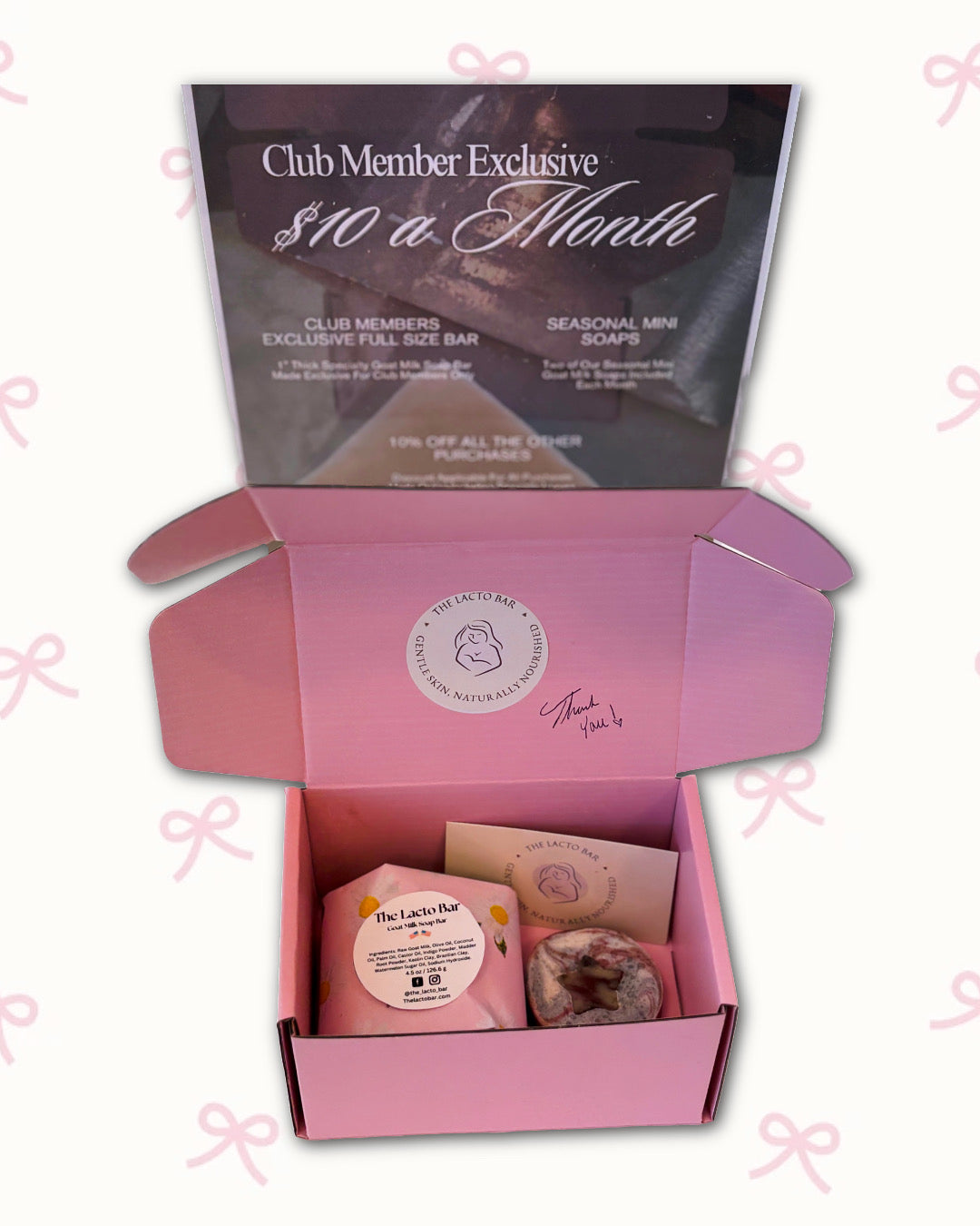 Pamper yourself with our Exclusive Soap Bars made just for club members! Each month, you'll receive 1x full size goat milk soap bar and 2x mini goat milk soaps. New style, smell, and design to elevate your bathing experience each and every month. Say goodbye to boring soap and hello to luxurious self-care. Plus all club members will receive a 10% off discount code exclusively made to use on unlimited orders. Sign up for our club member subscriptions to get your exclusive bar today!